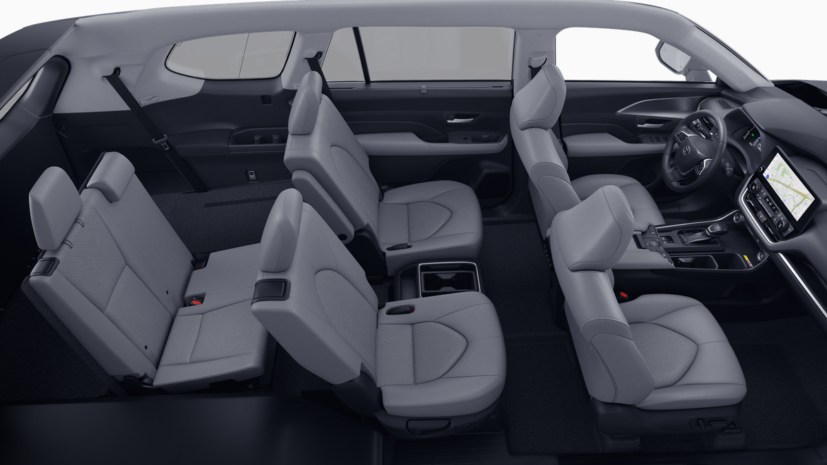 - 7-passenger seating with second-row fold-down captain's chairs and fold-down inboard armrests, adjustable headrests and two cup holders mounted on the floor; and 60/40 split, fold-down third-row seats with sliding headrests and recline function