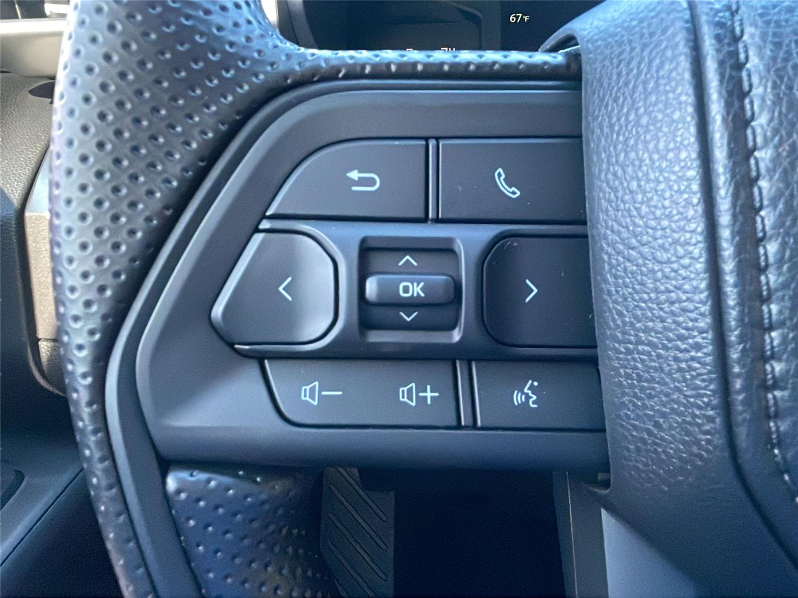 - Polyurethane manual tilt/telescopic steering wheel with phone, audio, display/infotainment, and Driver Assist controls