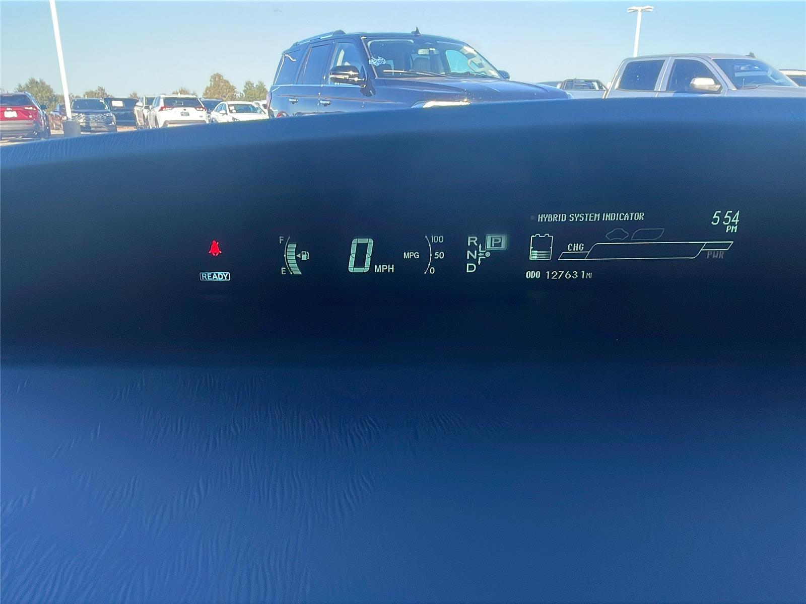 - The vehicle is equipped with a camera that displays an image of the area behind the vehicle on an interior display.