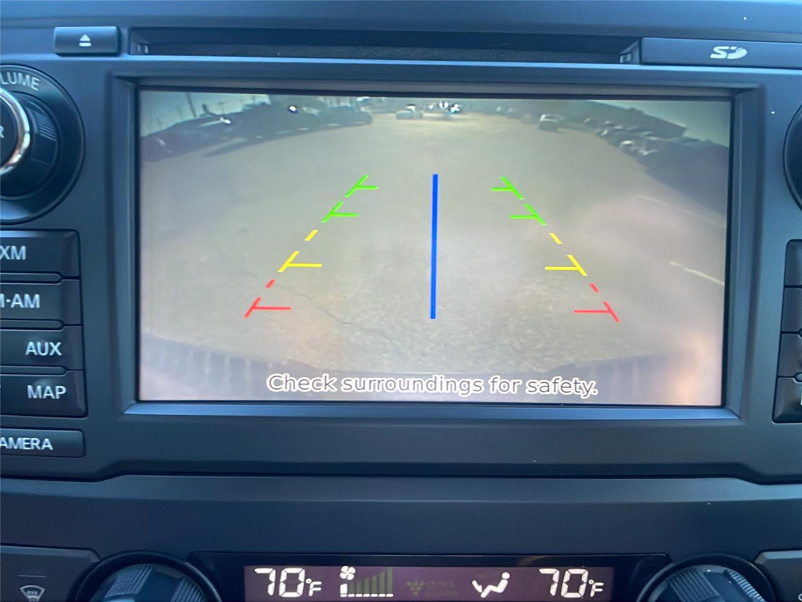 - The vehicle is equipped with a camera that displays an image of the area behind the vehicle on an interior display.