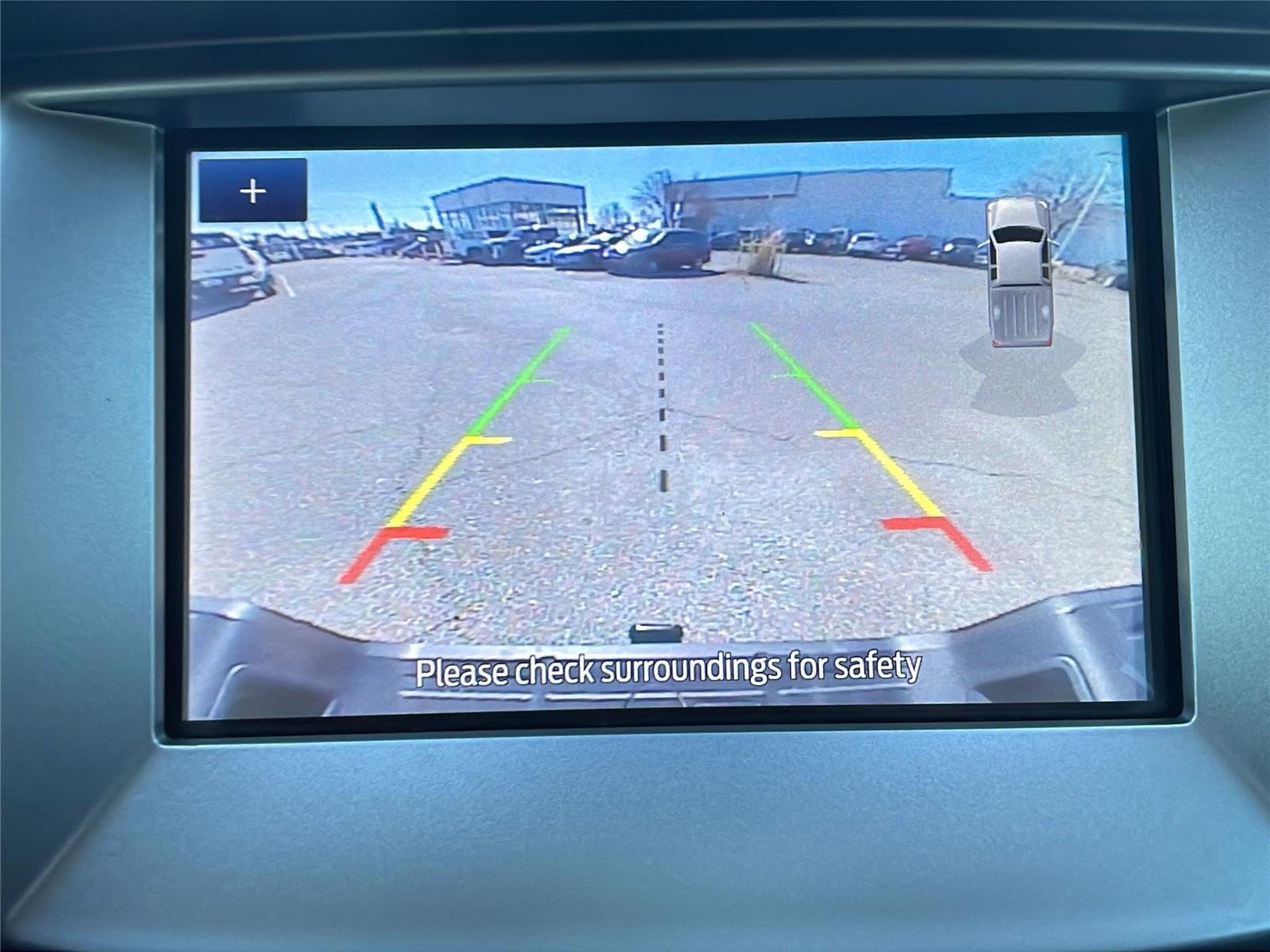 - The vehicle is equipped with a camera that displays an image of the area behind the vehicle on an interior display.