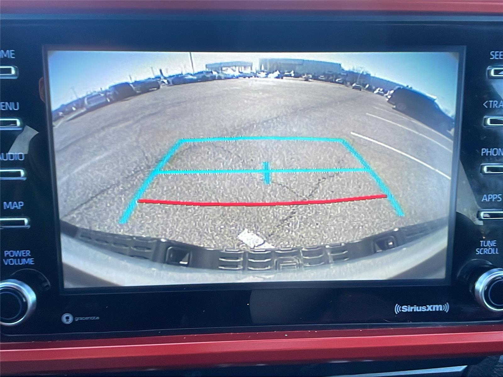 - The vehicle is equipped with a camera that displays an image of the area behind the vehicle on an interior display.