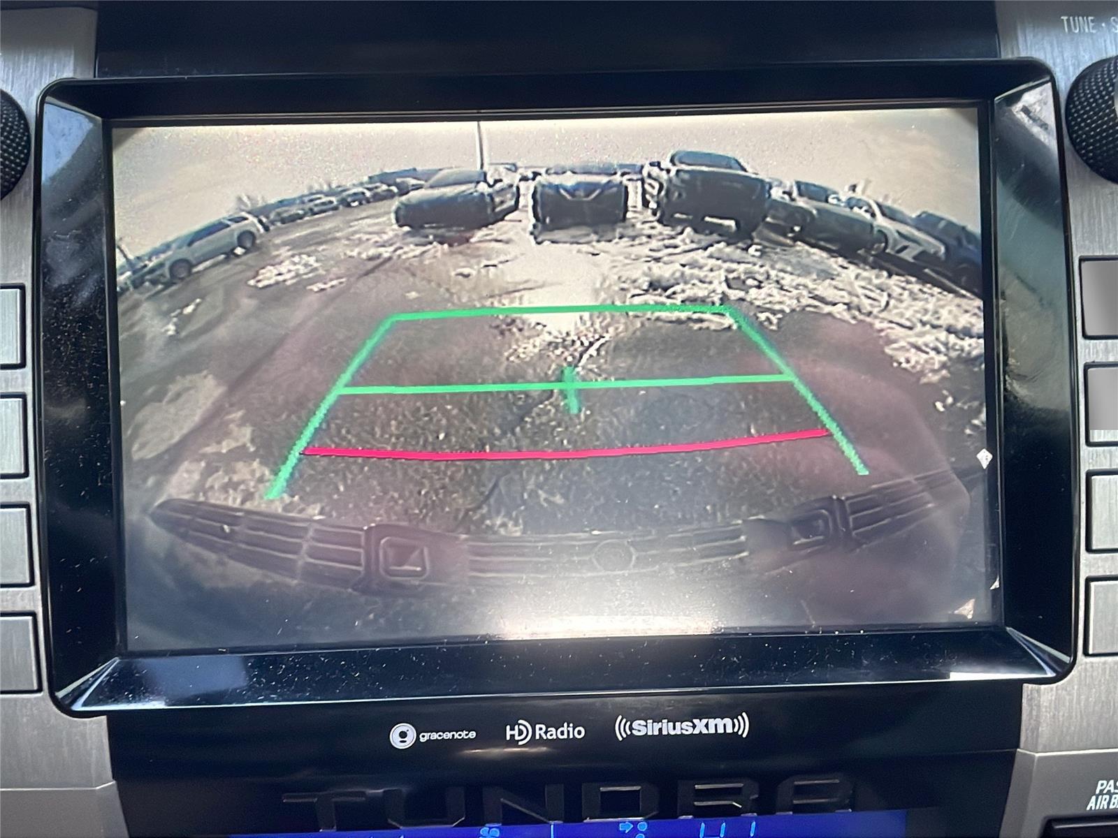 - The vehicle is equipped with a camera that displays an image of the area behind the vehicle on an interior display.