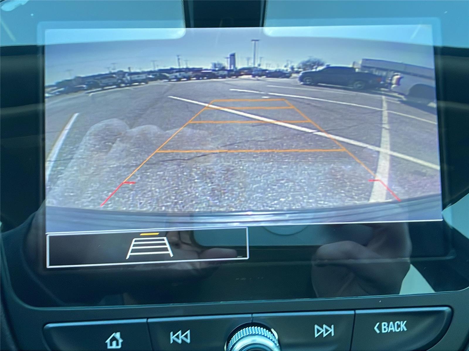 - The vehicle is equipped with a camera that displays an image of the area behind the vehicle on an interior display.