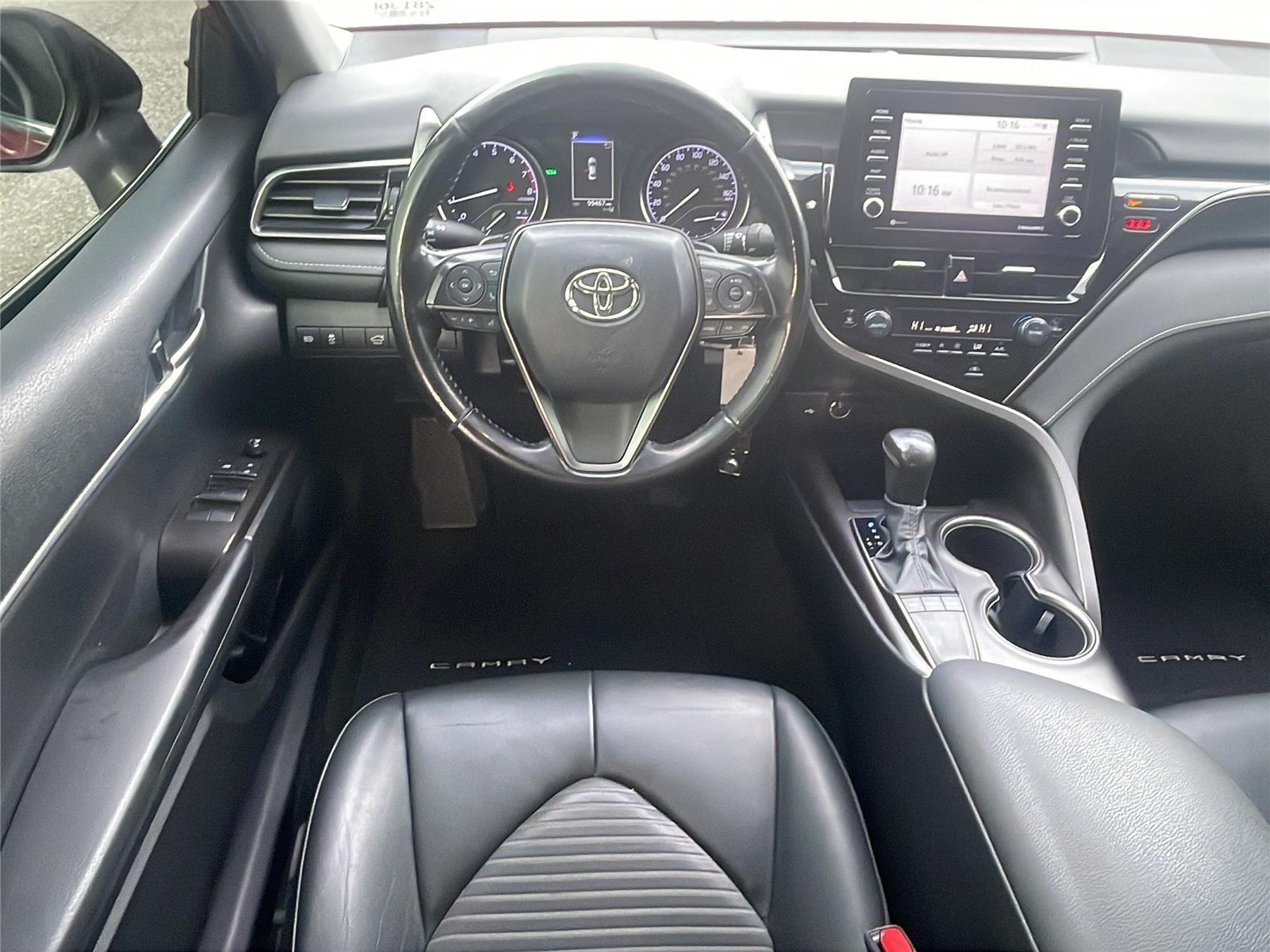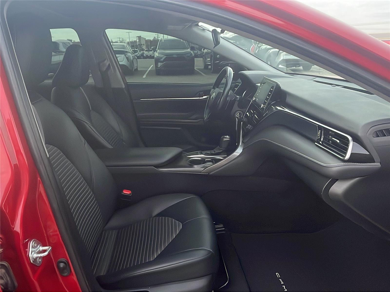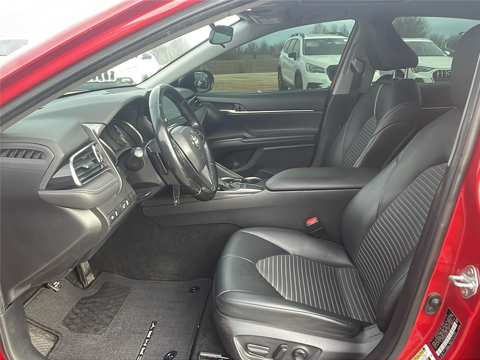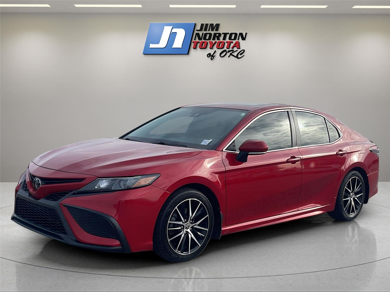 This 2022 Toyota Camry SE, has a Supersonic Red exterior and a Black interior. Please call us at 405-443-3142 and reference stock number 28136B for further details.